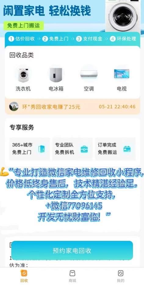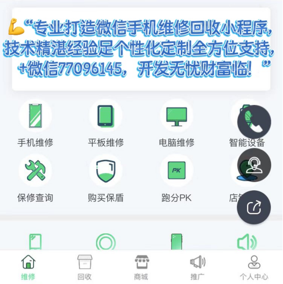 ��“专业打造微信手机.家电.维修回收小程序,技术精湛经验足。个性化定制,全方位支持,私聊不回复,请+微信77096145,开发无忧财富临!”